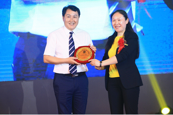 随州市政协副主席、工商联主席刘玲给会长授会长牌。