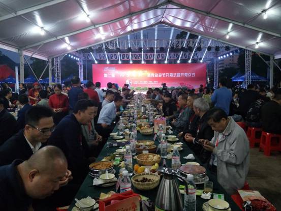 导言:“开笼啦!”伴着热烈的欢呼声,一个热气腾腾的巨型粉蒸笼,在12名身穿客家民俗服饰的壮汉齐心协力下揭开了“面纱”,在蒸笼开启的一瞬间,蒸笼内由不同粉蒸菜组成的双鱼图案呈现在观众面前,现场的气氛瞬间被点燃。