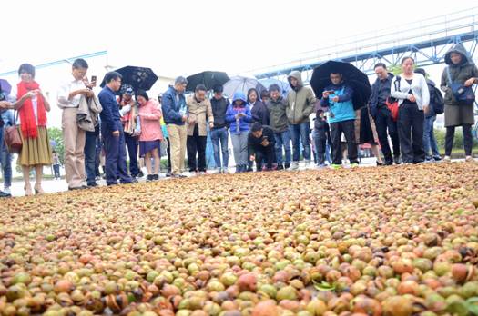 在成功登顶838级台阶的阳岭之巅后,大家驱车来到了江西齐云山食品有限公司占地105亩,建筑面积50000余平方米,固定投资超过一亿元,年产3.5万吨南酸枣系列食品的新工厂。亲眼见证了南酸枣从收购、分捡、清洗、预煮、去皮、核肉分离到制浆、烘干、成形、包装的所有生产过程。齐云山公司规范透明的生产过程,让所有在场的人连连称赞。