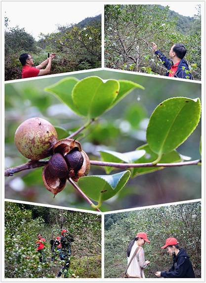 休息片刻我们便驱车继续往齐云山进发。车窗外,观赏着山谷里的绮丽风光,沐浴着习习凉风,大家游兴勃发。沿途我们参观了齐云山公司油茶林基地,看到挂满枝头的油茶果和油茶花,游客纷纷与“抱子怀胎”的油茶树拍照留念。