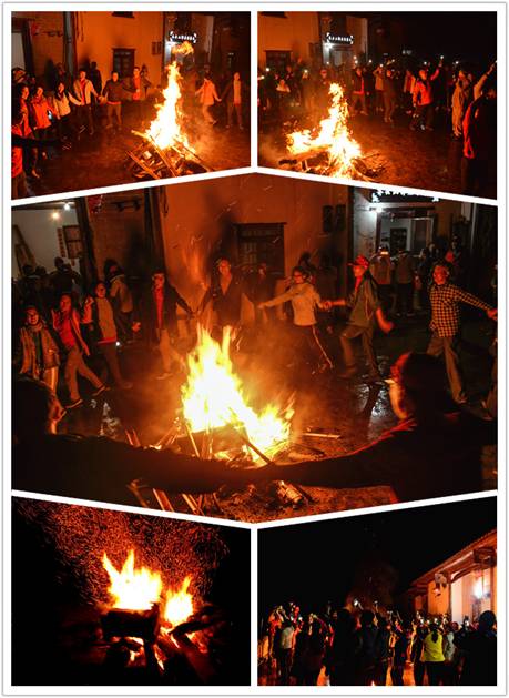 晚上,大家各自支好帐篷,随着篝火渐渐燃烧,还未等主持开始游客们便迫不及待纷纷围着篝火载歌载舞……