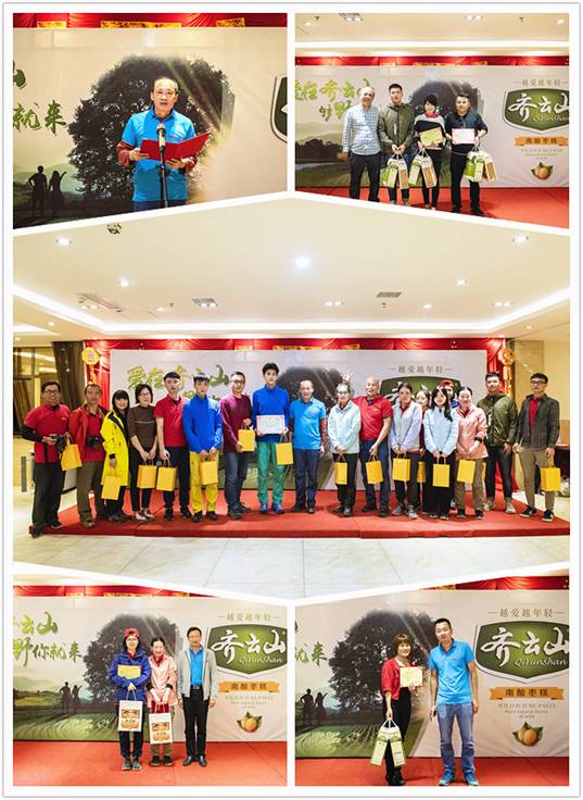 17日晚,我们举行了欢送晚宴。并分别颁发了捡南酸枣冠军奖、道德风尚奖、文艺达人奖、分享达人奖及优秀团队奖,此次登山节活动也圆满落幕。
