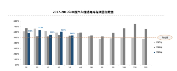近期,中国汽车流通协会发布的“中国汽车经销商库存预警指数调查”显示,2019年5月汽车经销商库存预警指数为54%,环比下降7%,同比上升0.3%,库存预警指数已经连续17个月超越了50%的警戒线。更有厂商5月销量大减,声称是为了去库存。
