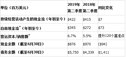 至2019年6月,持续经营活动产生的现金流为4.22亿美元,与公司预期相一致。