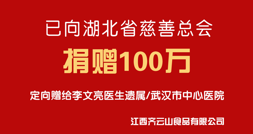 江西齐云山食品有限公司已向湖北省慈善总会定向捐赠100万元