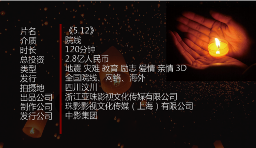 亚珠影视联合多家知名影视公司投资2.8亿拍摄院线电影《5.12》!