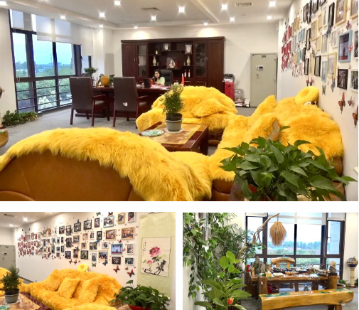 总裁办公室可谓非常具有设计感,明亮的鹅黄色沙发垫在暖黄色灯光的照射下,显得格外的柔和,周围的墙上琳琅满目的明星合照、参加的活动照,能够看出,公司一路走来的成就。