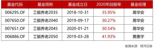 银河证券数据同时显示,工银养老2040、工银养老2045在2020年也分别取得30.27%、30.54%的净值增长率;成立于去年9月2日的工银养老2055在不到四个月的时间里也取得超过10%的净值回报;作为工银瑞信旗下首只养老目标风险基金,成立于去年9月30日的工银稳健养老去年也实现3.02%的净值正增长。