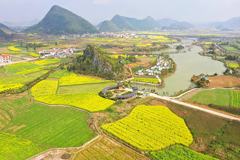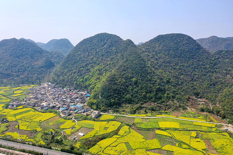 时下,贵州省中部地区山清水秀,油菜花开,春光明媚。