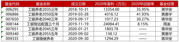 从单只产品和细分品类来看,2020年公布年报的167只FOF全部实现盈利,24只盈利超过1亿元,拥有“养老主力军”之称的养老目标日期FOF合计盈利超过28亿元。作为FOF布局最全面的基金公司之一,工银瑞信旗下工银智远配置三个月持有期混合FOF盈利达2.4亿元,盈利额在市场所有FOF中排名前10;此外,工银瑞信旗下5只养老目标日期FOF合计盈利达2.06亿元,在所有披露该类基金数据的25家基金公司中排名第5。