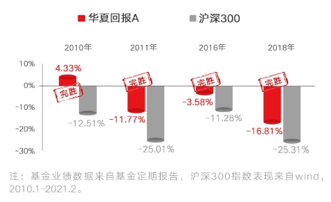 更难能可贵的是,华夏回报本着为客户赚取长期稳定回报的理念,控制权益仓位,在市场下跌时更见基金韧性。2010年以来沪深300有4次跌幅超过10%,华夏回报A同期跌幅均大幅低于市场平均水平。在目前市场仍未走出震荡的情况下,适合风险偏好中等、在意回撤的投资者,也适合长期定投。
