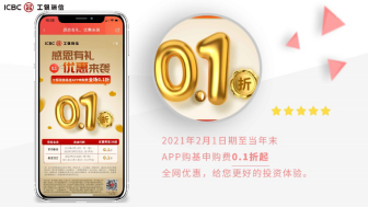 值得注意的是,为降低投资者交易成本,发挥基金公司直销平台的费率优惠优势,工银瑞信基金特别对APP用户提供费率大优惠,即日起至年末,投资者使用工银瑞信基金APP最低可享受0.1折优惠,即全场基金申购费0.1折起,让手续费不再成为客户投资的顾虑,使投资交易更“知心”。