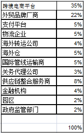 传统/新品牌商、直播平台、电商平台、技术服务商外贸品牌厂商、跨境电商平台、支付平台、物流企业、海外转运公司、海外仓、国际管线运输商、关务代理公司、供应链整合服务商、政府监管部门、金融机构、园区、营销机构、投资机构、研究机构、MCN机构、媒体