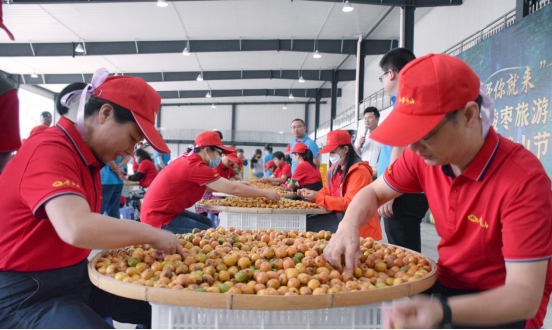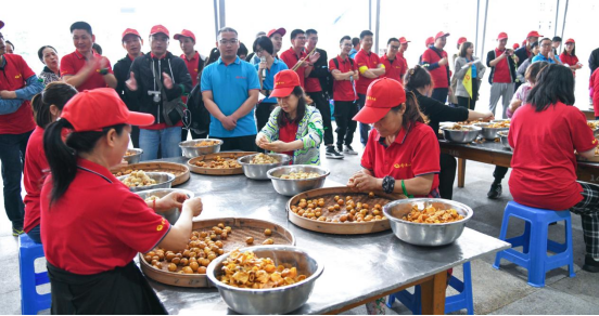 参观结束后,来宾们以分组的形式参加了《挑选南酸枣》、《南酸枣剥皮》、《南酸枣取肉》接力赛活动,体验了传统古朴的手工挑选南酸枣、剥皮、去核取肉的过程,共同赢取了万元现金大奖。赛后大家纷纷感叹:“长于深山,十年挂果的南酸枣本来就数量稀少、珍贵和来之不易。一颗成熟饱满的南酸枣也仅能分离出20%多的果肉,齐云山南酸枣糕真的是来之不易!”一片小小的南酸枣糕凝聚了齐云山人的辛劳、智慧和情感,是跋山涉水来到我们面前的天然绿色健康食品。