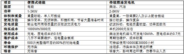 二、便携式储能对传统小型燃油可移动式发电机的替代性分析