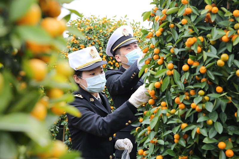 图为:关员对出口年桔进行现场监管 卢澄禧/摄