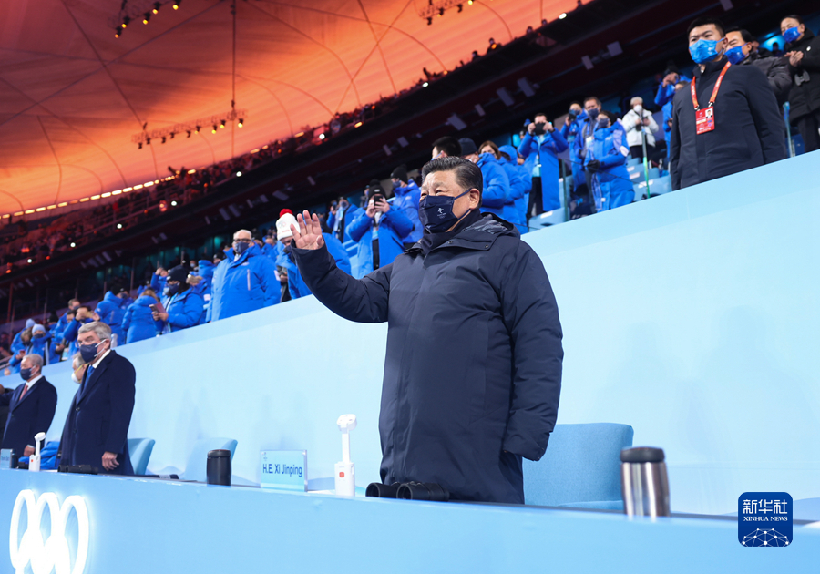 2月4日晚,中国国家主席习近平、国际奥委会主席巴赫出席北京第二十四届冬季奥林匹克运动会开幕式。新华社记者 鞠鹏 摄