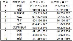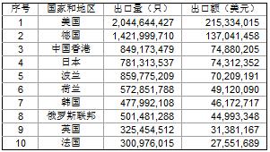 1、美国,2021年出口美国金额为56.60亿美元,占中国总出口额16.20%,2020年出口美国金额32.11亿美元,同比上涨76.27%。