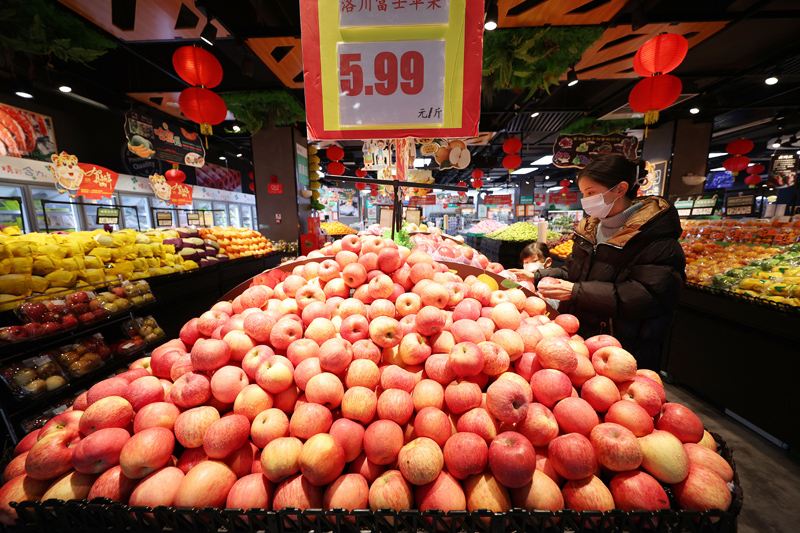 2月16日,顾客在贵州省丹寨县一家超市选购水果。 新华社发(黄晓海 摄)