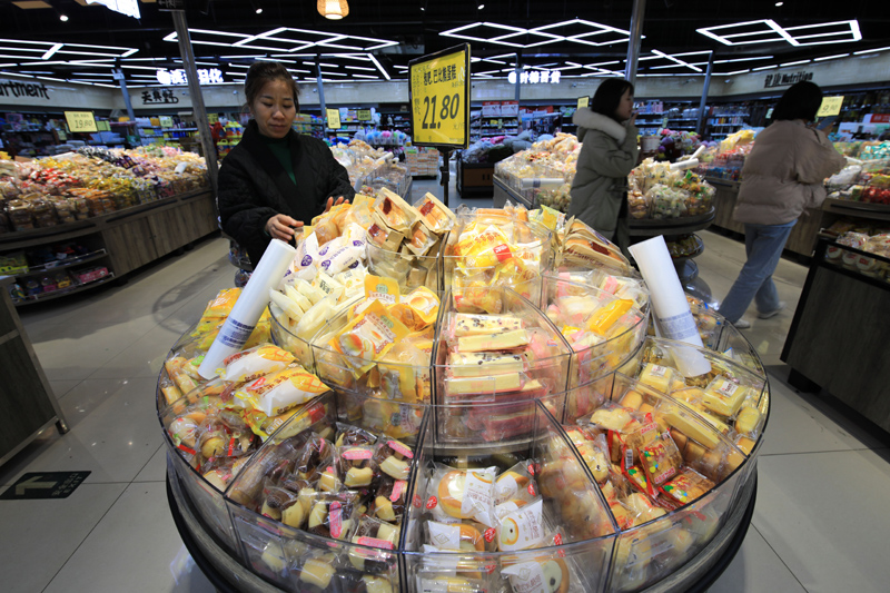 2月16日,顾客在贵州省从江县一家超市内选购食品。 新华社发(罗京来 摄)