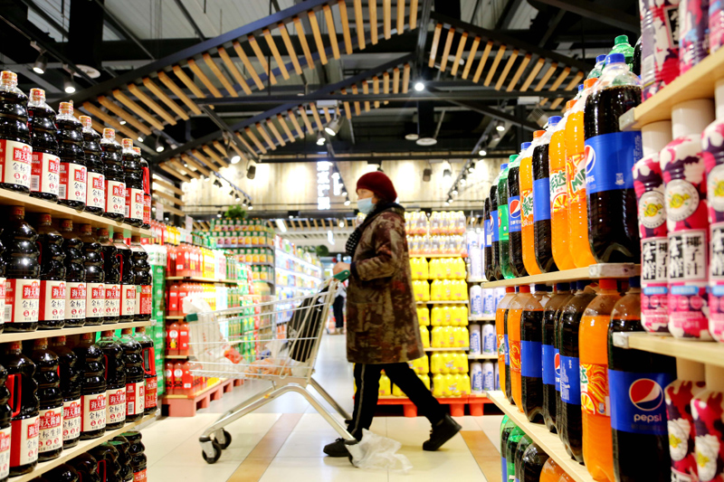 2月16日,顾客在江苏省连云港市连云区一家超市内选购商品。 新华社发(王春 摄)