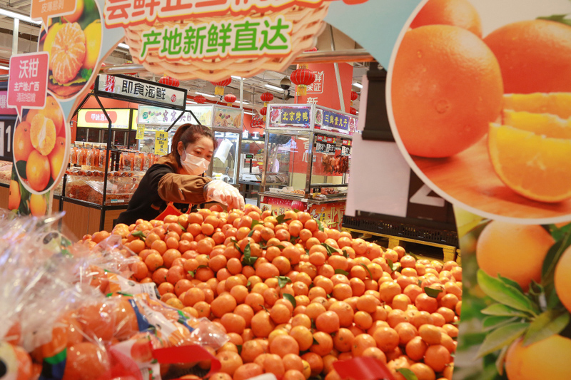 2月16日,贵州省毕节市七星关区一家超市员工在整理商品。 新华社发(王纯亮 摄)