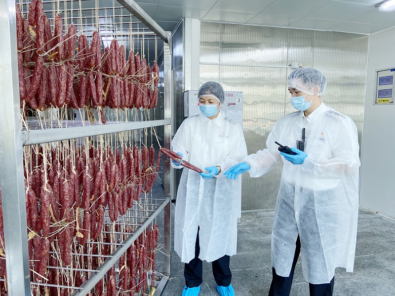 图为:关员到腊肠出口企业开展核查 彭扬/摄