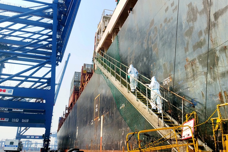 今年9月,大窑湾海关接到某入境货轮申请,该船有一名船员胃部疼痛难忍,亟需下船就医。接到检疫命令时已经是晚上8点多,李跃琦丝毫没有犹豫,快速做好登临前的各项准备工作后,立刻乘车前往码头。待船舶靠港后,她第一时间登船,并完成对该船员进行核酸采样工作。随后,李跃琦更是积极与码头公司、定点医院进行沟通协调,确保患病船员“点对点”转移至医院,及时接受治疗。