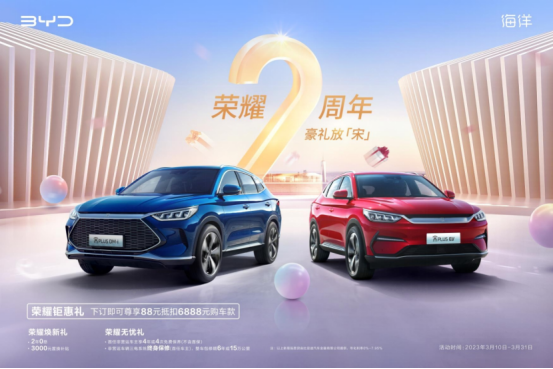 在宋PLUS新能源车型上市两周年、达成50万销量之际,为让更多消费者加入到新能源出行阵营,体验比亚迪先进技术带来的出行魅力,比亚迪海洋网特此回馈用户推出限时荣耀钜惠礼:在3月10日-3月31日下订宋PLUS DM-i或宋PLUS EV即可享受88元订金抵扣6888元购车款。作为紧凑型新能源SUV领域的领跑者,宋PLUS车系既向前大步拓进,也从未忘记背后鼎力支持的消费者。