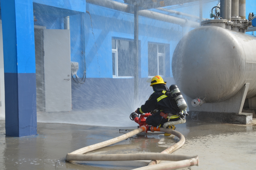 五支消防战斗小组按照职责和分工,紧张有序地开展救援。他们利用泡沫水罐车铺设水炮阵地,对起火位置进行扑救,开展现场有毒气体检测,10分钟后,事故得到有效处置。环境检测组安排人员对事故现场的废水及周边大气进行了实时检测。