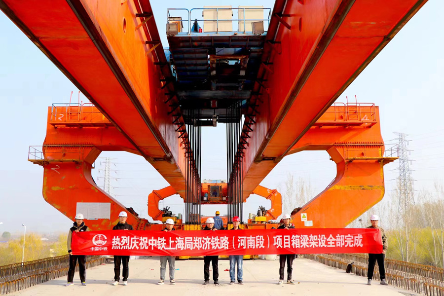 由中铁上海工程局集团承建的济郑铁路濮阳至省界段工程项目,线路全长19.975km,纸房乡制梁场位于濮阳市清丰县张二庄村,占地180亩,承担着清丰特大桥558榀箱梁的预制及架设任务。项目自2021年4月进场以来,相继克服新冠疫情和汛情不利影响,科学管理、精心组织,强化资源配置,采取循环倒班作业为济郑高铁建设关键线路工期创造了优化压缩条件。下一步,项目部将继续强化现场施工管理,紧盯工程进度、质量安全等重点,全力冲刺节点目标任务。