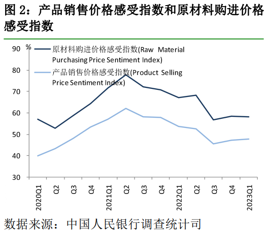 一季度,原材料购进价格感受指数为 58.0%,比上 季下降 0.5 个百分点,比上年同期下降 9.1 个 百分点。其中,24.2%的企业家认为本季原材料 购进价格比上季“上升”,67.6%认为“持平”, 8.2%认为“下降”。