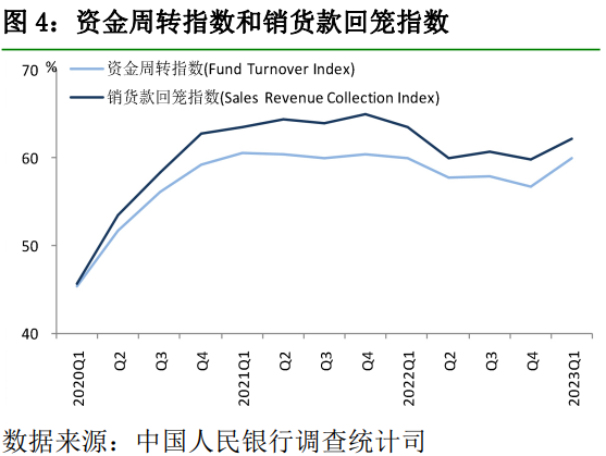 一季度,资金周转指数为 59.9%,比上季上升 3.3 个百分点,与上年同期基本持平。其中, 33.2%的企业家认为本季资金周转状况“良 好”,53.5%认为“一般”,13.3%认为“困难”。
