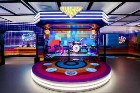 在音乐空间里,一个特制的互动舞台正等待着孩子和家长们一起组成乐队上台演出。拿起自己喜欢的乐器,触发脚下的互动按钮,变身魅力四射的大明星,与乐高小人仔乐队一同舞动,尽情表演!孩子们也可以一起钻进“特大号乐高积木”里,扮演一次“非常砖块演奏家”。艺术家们为大家准备了钢琴、古筝和3组神秘的声音。孩子们可以通过自由排列不同颜色的砖块编曲,体验创作音乐的乐趣。
