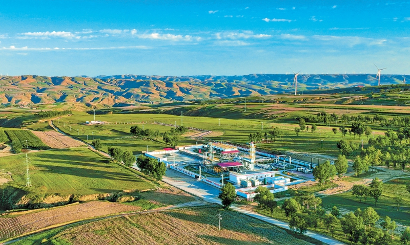 长庆油田通过地面系统优化简化、伴生气及试气回收利用等项目,从源头减少能耗和碳排放,切实提升油气商品率。图为长庆油田规模最大的伴生气处理站——姬塬首站伴生气处理站。