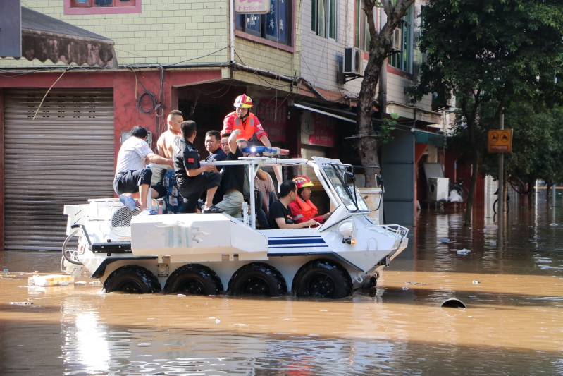 山猫多功能水陆两栖全地形车完成受困群众转移
