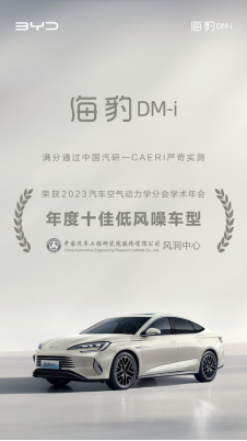 实力认证,海豹 DM-i 荣获“2023年度十佳低风噪车型”称号