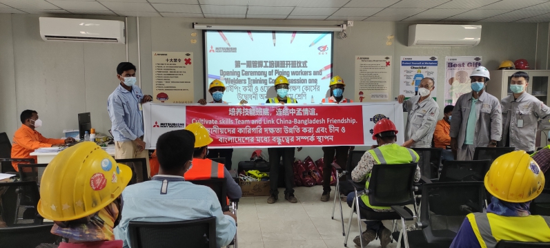 为此,项目部设立专门的培训室,不定期组织对孟籍人员开展多样化培训工作,以提升孟籍人员综合素质。新进孟籍员工正式进入现场工作前,项目部会编制包含安全培训、防疫知识培训、行为规范、文化融合等丰富且有趣的培训课件,由孟籍管理人员担任培训师,讲解项目现场安全健康要求,规范人员作业行为。