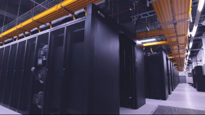 项目总体规划3万3千个机架、45万台服务器、5000P Flops智能算力,并叠加先进的芯片底座和AI算法,实现了通算、智算、超算、信创多种算力布局,以合力打造算力、算法、算据、算网“四算一体”新引擎。