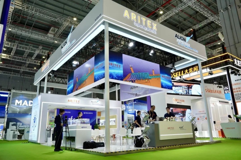 11月5日,航空工业举行重点进口采购项目集中签约仪式。图为本届进博会航空工业展位。