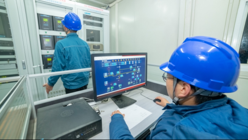 长岛智能微电网群示范工程,实现了海岛电网安全、绿色、经济、高效稳定运行。供电公司工作人员正在砣矶岛能量总站巡检微电网设备。