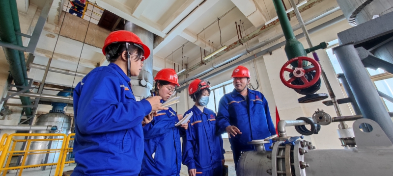 图为该公司青年员工在生产现场开展“实践课”。王潇 摄