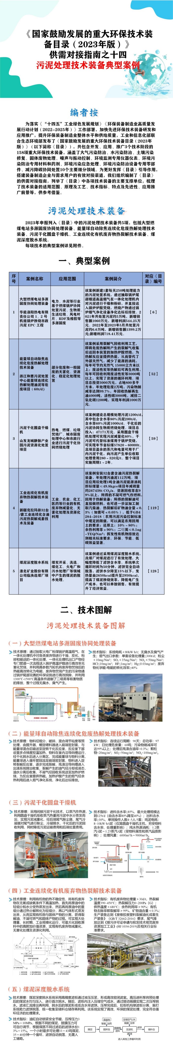 《国家鼓励发展的重大环保技术装备目录(2023年版)》供需对接指南之十四 污泥处理技术装备典型案例
