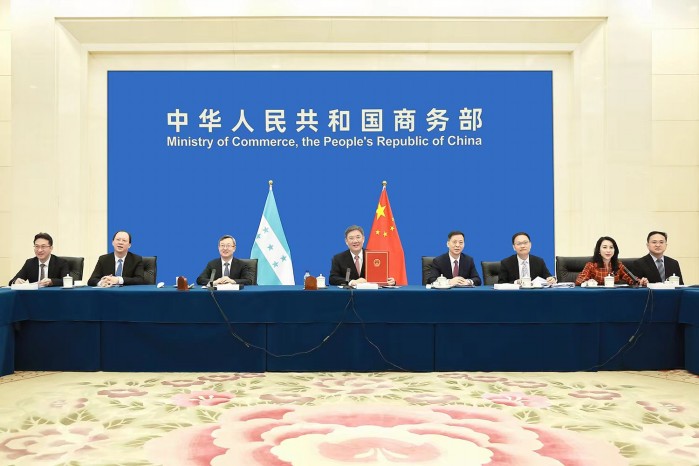 据商务部网站消息,2月7日,商务部部长王文涛与洪都拉斯经济发展部部长塞拉托分别代表两国政府,以视频方式签署《中华人民共和国政府和洪都拉斯共和国政府关于自由贸易协定早期收获的安排》。商务部国际贸易谈判代表兼副部长王受文,洪都拉斯经济发展部副部长雷东多等出席活动。