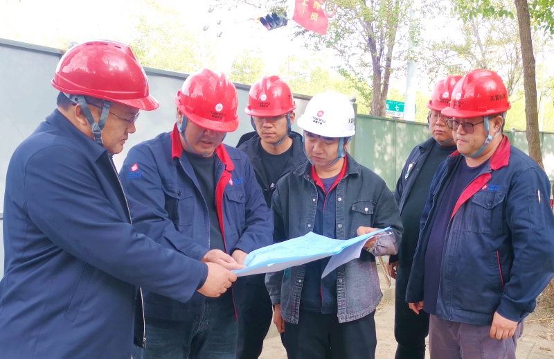 天富建筑产业大单位委员、执行总经理,委员公司总经理陈鹏(左二)一行陪同上级领导检查绿化灌溉工程项目施工.jpg