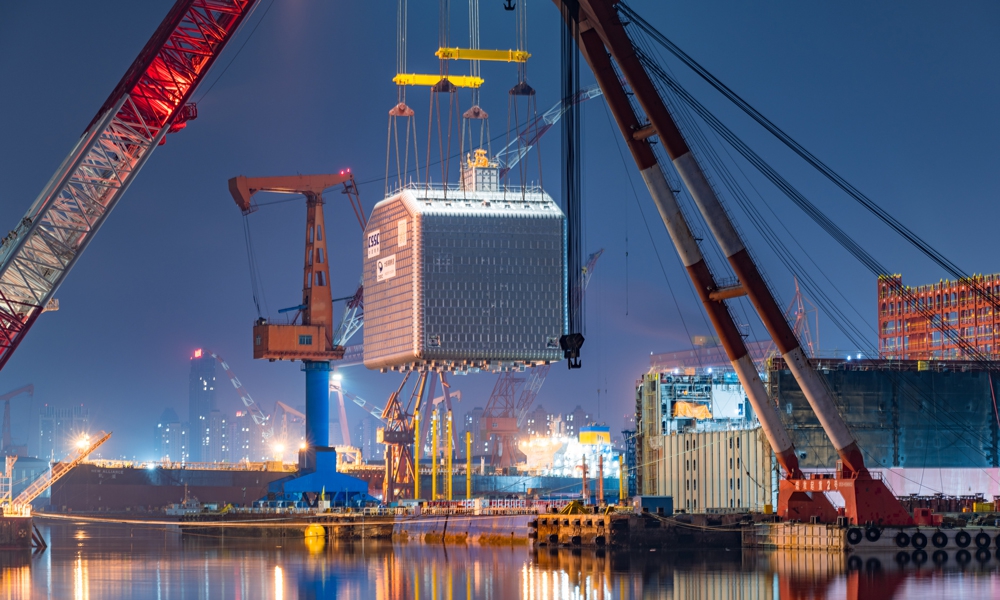 全球最大B型LNG燃料舱吊装作业的顺利实施,填补了国内又一项技术空白,形成了系统性B型舱吊运、安装工艺,掌握了B型舱吊运、安装关键技术,这些都是项目团队群力协作、攻克难题过程中收获的宝贵成果,将为后续液化罐类船舶的建造提供强劲支撑。常江 摄