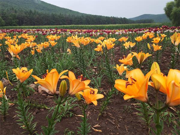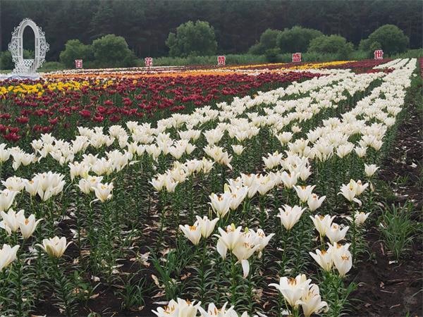 占地60亩的百合园,47万株百合花浪漫怒放,白的圣洁、黄的绚烂、紫的高贵、红的热烈、粉的优雅,千姿百态的百合汇成一片馥郁芬芳的海洋。