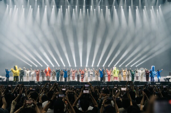 在巡演最后第182场,陈奕迅与一众表演人员鞠躬致谢,感谢观众一直以来的支持!