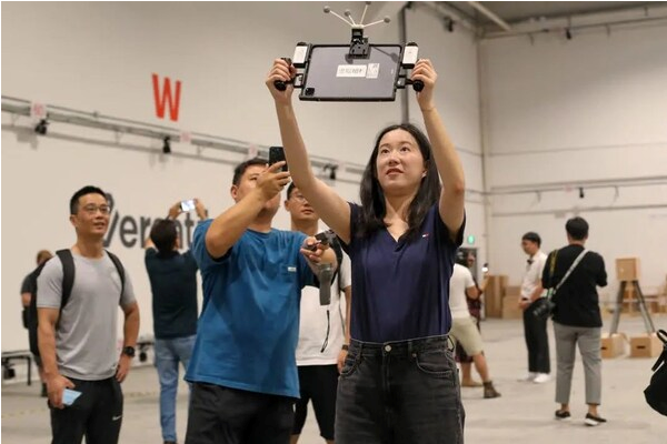 在博采AI虚拟影视基地,采访团观看宣传片,对虚拟制片技术和流程进行了解。现场,这个单体直径达50米、270度环屏的"超级巨幕系统"让采访团兴奋不已,随着环幕上的光影变化,大家化身"演员",在屏幕前沉浸式体验拍"大片"。
