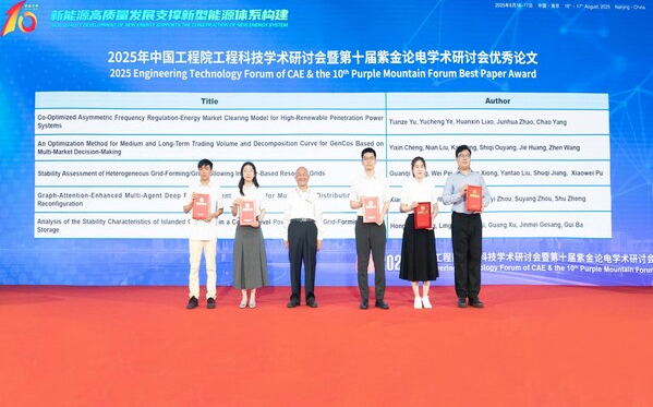 在紫金论电学术研讨会召开十周年之际,由郑宗强为薛禹胜院士颁发"紫金论电卓越功勋"纪念杯,表达对薛禹胜院士十年来卓越贡献的感谢。大会评选出5篇优秀论文,由薛禹胜院士为优秀论文作者代表颁奖。本次会议收录的58篇论文将由施普林格出版社结集出版。同时,会议期间张贴论文并安排宣讲,特别邀请一批高质量会议论文作者到现场分享研究成果,进一步促进新技术的深度交流。